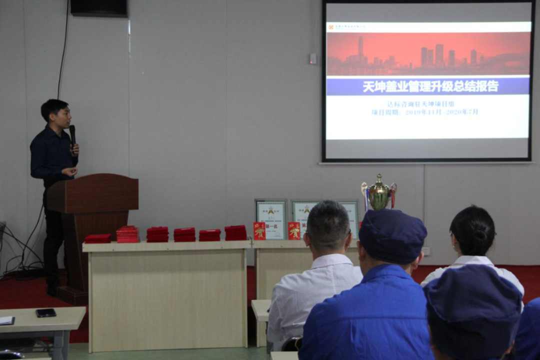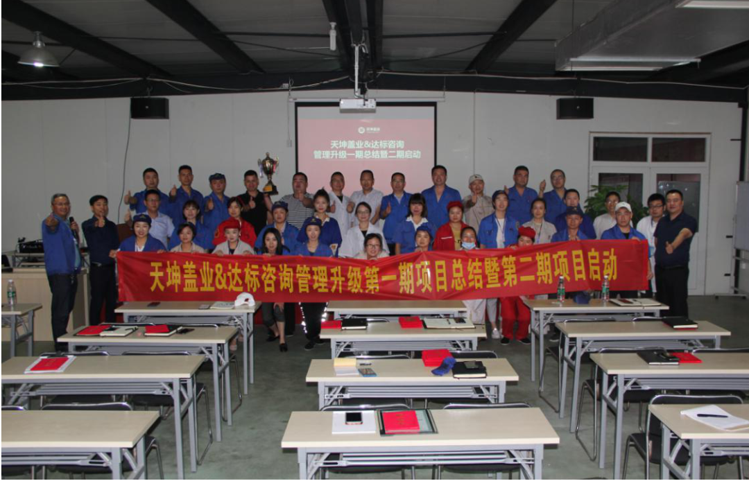 2020年8月,天坤盖业&达标咨询管理升级一期总结暨二期启动大会顺利召开,天坤盖业总经理周总,副总经理李总达标公司项目总监彭老师,精益咨询师刘老师,王老师及天坤全体管理层人员共同出席了本次会议。
