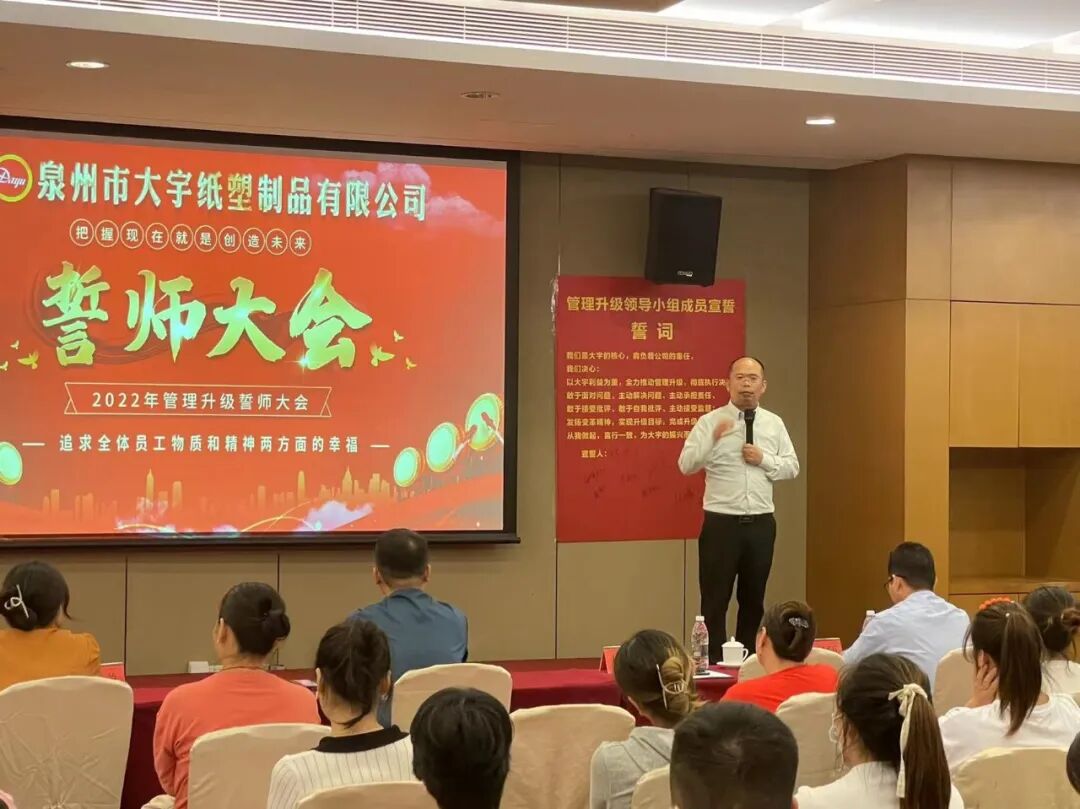 此次誓师大会取得圆满成功,预祝泉州市大宇纸塑制品有限公司《企业管理升级》项目取得卓越成效!!!
